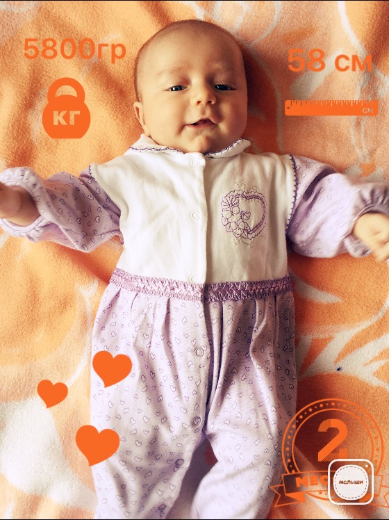 Весит мое счастье уже 5800, а это +800 г за месяц (наедаем щечки к зиме)) и где-то 58 см в длину (+5 см за 2 месяца, если я правильно его померила). С 56 размера мы плавно перекочевали в 62. Да, сынок уже не крошка, а богатыренок (до богатыря нам еще расти и расти)