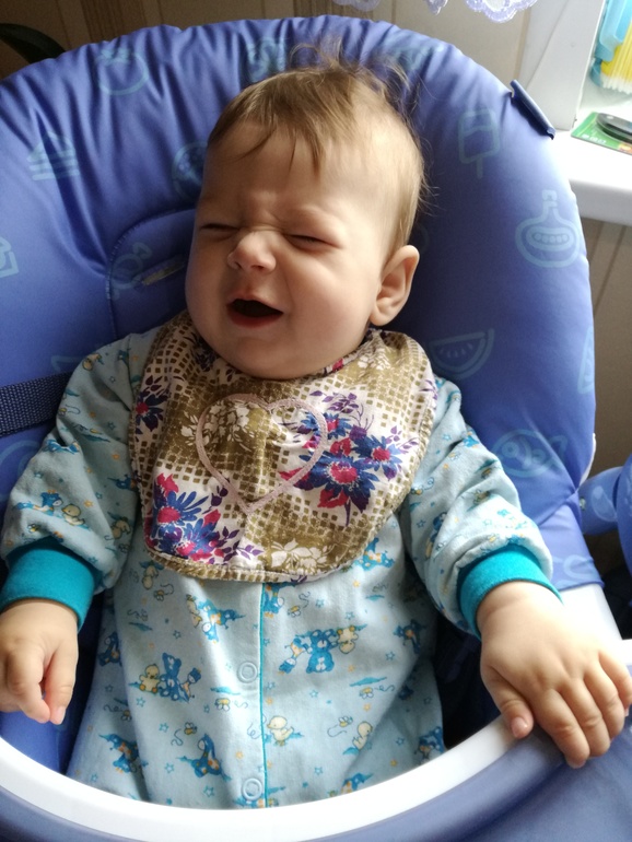 У меня Настя на все делает такое фу-лицо)Смешные они)Мы еще не прикармливались, но по опыту с сынос скажу, что все эти банки дрянь редкостная!Я за ним ни одной доесть не смогла. Думаю сластюше либо сама делать, либо просто отваривать куском, чтобы мусолила.