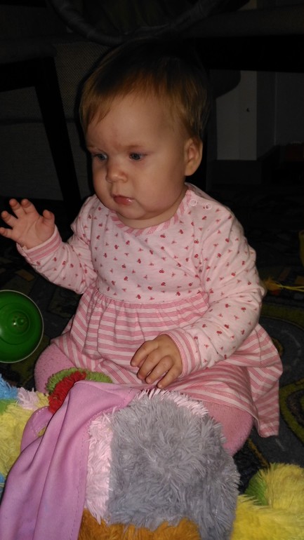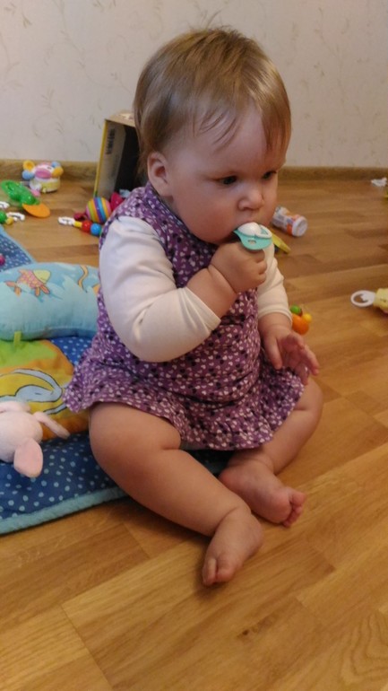 Отчёты по месяцамЧто-то времени совсем стало не хватать.Рост в 8 мес. 70 см, вес 10400, рост в 9 мес 72 см, вес 10850.За эти месяцы много чего научилась делать. Научилась ползать, теперь очень быстро ползает, может порог в ванну перепелозти. Пока-пока уже больше месяца показывает. Неделю назад хлопать начала. Четыре дня назад стала вставать, держась за что-нибудь. Научилась пить из трубочки. Говорит мама, папа, вава, баба и любимое БУ ))) Еще у нас три зуба, ждем четвертый.Обожает качаться на качелях, это мое спасение, когда надо что-то сделать, а у нее нет настроения самой играть.И фото: