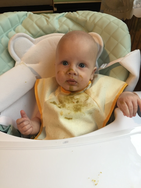 - Прикорм мы ввели с 4 месяца, по наставлению педиатра, так как мы практически с рождения на ИВ. Ввели с кабачка, но мне показалось, что ребёнок стал от него много пукать...) и мы на неделю отложили, потом ввели цветную капусту. Сейчас кушаем практически все баночные овощи (брокколи, цв.капуста, кабачок, морковь, тыква), фрукты (яблоко, груша), каши (греча, рисовая, овсяная, кукурузная). Ввела недавно творог, по 25-30 грамм в день, утром. Пьёт яблочный и грушевый сок, по 60 мл в день после второго завтрака.