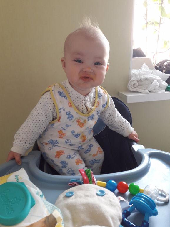 Самое интересное сейчас, конечно, это принятие пищи. Как только Лида попадает в стул, она тут же встает на ножки и начинает пританцовывать, приседая на месте и махая руками. И вот как хочешь так и попадай ложкой в рот. Зрелище еще то!