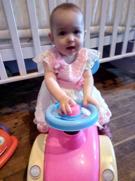 Отчёты по месяцамНам сегодня 10,уже 10.А вроде только вчера из РД приехали.Зубов у нас 6,при том верхние 4 вылезли один за другим в течении двух дней.А то я уже думала,что так и будем с двумя нижними ходить. Ползаем со скоростью метеора,ходим у опоры так же.Уверенно стоит сама,делает пару шагов,но потом садится на попу.Очень много говорит,но любимое это дай и ням.Поесть очень любит с ложки,ест хорошо и всё что даю.Но так как мы аллергики,особо не разгуляешься.Каждый раз голову ломаю,что приготовить.Утром(не всегда) и на ночь смесь,а 4 раза прикорм.Едим каши безмолочные флёр алпин 180 гр,развожу на смеси+50 гр фруктовое пюре.Фрукты яблоко,груша,персик.Овощи кабачок,картошка,тыква,морковь.Злаки рис,кукуруза,гречка,вермишель без глютена из кукурузной муки.Мясо кролик,индейка,цыплёнок.Вот и попробуй разнообразно готовь.А вот вес у нас маленький,всего 8350 кг,рост 70 см.Родились 3300 кг,52 см.Были вчера у врача,говорит мало весим для своего возраста.На площадке то же говорят другие мамочки,что мы маловесные.Другие детки в этом возрасте 10 кг. Расстроилась жутко,думала весить будем больше,тем более так хорошо едим.Последний раз взвешивались 31 августа,были 7950 кг.А так мы очень активные и шкодливые.За 5 минут раскидаем и свои игрушки и брата и залезем в шкаф к сестре и наведём там "порядок".Готовимся к годовасию,единичка уже готова.Делала сама,переделывала раз 10,доже хотела уже забросить.Но результат мне нравится.