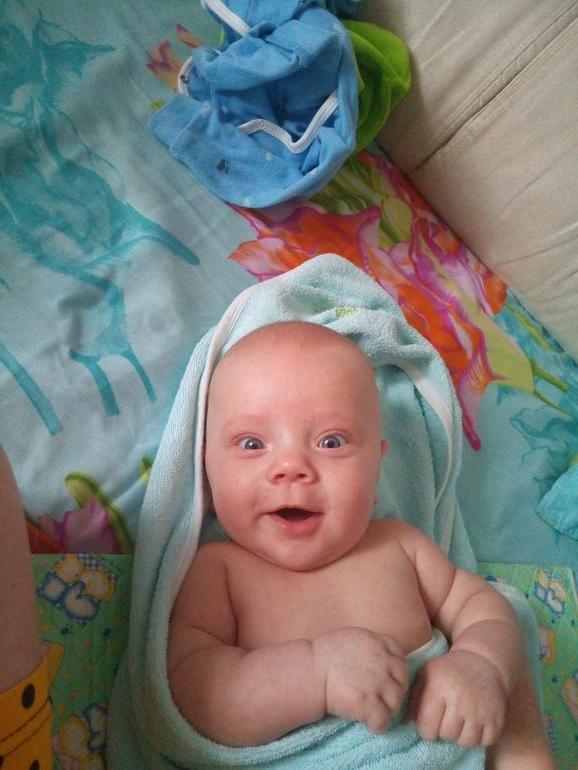 Режим четкий, чему я несказанно рада) хотя бывают и сбои) любит кататься на машине, вот больше ничего и не надо) переворачивается на живот через правый бок пока, а на спину через оба. Но предпочитает левый, и катается колбаской😀иногда встаёт на коленки, но редко и будто случайно, неосознанно) ползает назад😂 перекладывает игрухи из руки в руку, выбирает их лёжа на животе. Тарабанит погремухами по любым поверхностям и в любой позе. Разговорчики периодами, иногда замолкает. Но если говорит, то так, что уши вянут😂 он просто кричит, иногда переходя на ультразвук) Слюни ручьями, даже врач удивилась. Ввели кабачок,начали капусту. Капуста нравится больше) пробовали кашку гречневую, когда больше не дала, закатил истерику😅 недавно наконец переехали спать из коляски в кроватку, думала война будет более кровавой, а он просто взял и заснул в кроватке) сейчас ездим на электрофорез с магнезией, восстановливаем кровоток в гм. После на массаж (выпросила у невролога общий бесплатный! Массаж). В общем и целом живём мирно, хотя в первые месяцы было ужасно тяжело((( ну и фото тушканчика)))