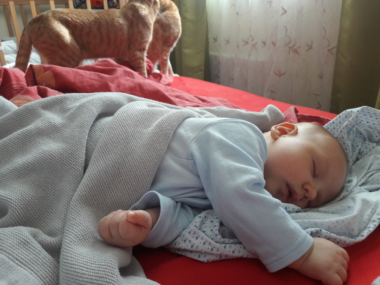 Вчера поставили 2 прививки. Показалось, что провели почти целый день во сне, ночью чаще просыпался, сегодня проснулся на прогулке и не хотел утешаться, пошли домой, во время кормления повеселел. Педиатр напомнил, чтобы мы берегли своих малышей, а не ходили по развивающим центрам, зима на дворе, кругом все болеют, а малыши все равно ничего не понимают! Вот. Промолчала, что мы ходили на детский день рождения Лёши в ТЦ.