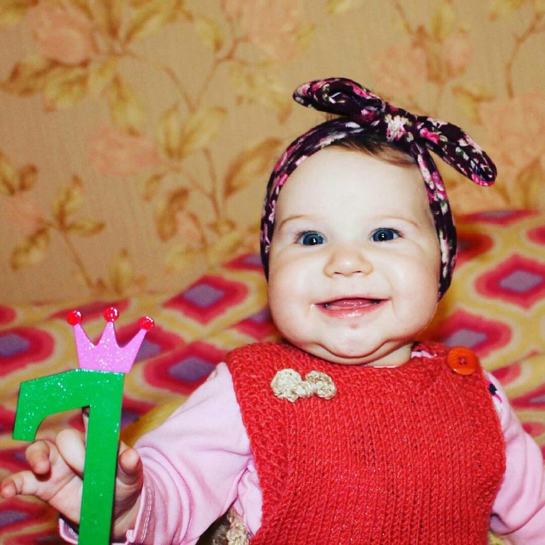 Лапочка -девочка! Поздравляю вас с 7 месяцами!!! Действительно по фото вас Как будто 9-10 месяцев! ))))) не болейте растите здоровыми)))