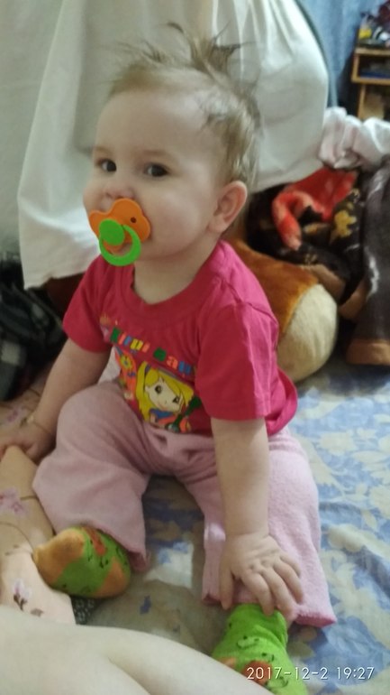Отчёты по месяцам7 декабря было ровно 9 месяцев. И так по порядку вес 8710 рост 74 см. Кушаем кашки,супы,пюрешки. Ещё были сегодня на УЗИ сердца,у нас оказывается в месяц было открытое овальное окошко,и оно закрылось. Умеет стоять держать равновесие по 10-15 секунд стоит свободно,без помощи и поддержки делает 3-4 шага,думаю ещё чуть чуть и скоро пойдем))) имеем 4 зубика,темечко правда 2 см,ну до года время у нас есть) и маленько фоток