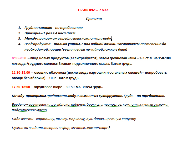 я еще меню писала, чтоб не забыть, что уже давала, чтоб был полный рацион и тд.
