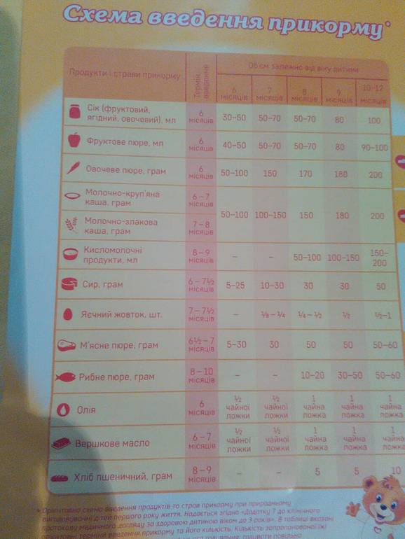 ну вот здесь как раз на наш возраст разрешено то что мы и даем. но в других таблицах пишут что в 7 мес. нужно вводить кефир и творог. желток