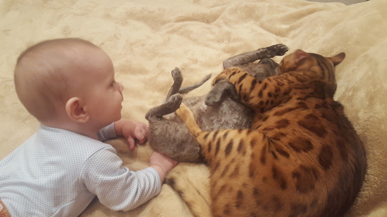 А это уже после. Виновник (серый кошарик) получает от леопардика))