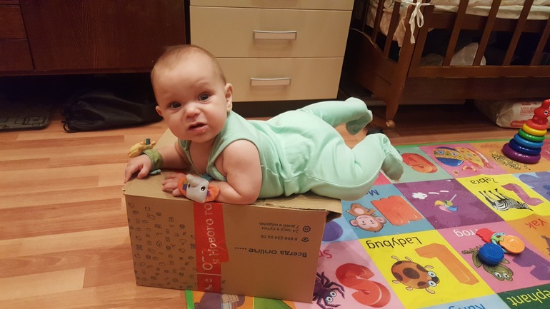 1. Сначала Ромочка увидел коробку, она его очень заинтересовала. Слышу из соседней комнаты - пищит. Прихожу, картина маслом))