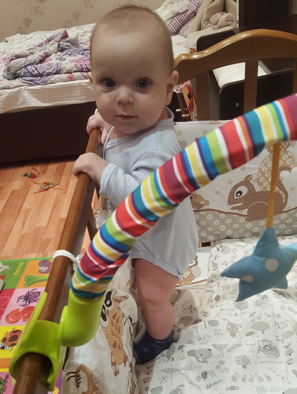 3. Некоторое время назад Рома начал привставать везде, но это всё так неуверенно было. Я думала, что в кроватке он даже не догадается, что так можно, и встанет нескоро. Ага, конечно)
