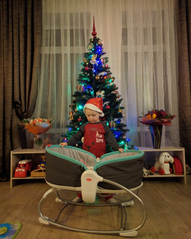 Слава баунсеру, Жека пока все время спит в нем, в кроватку ещё не клали даже, очень удобно таскать его по квартире.