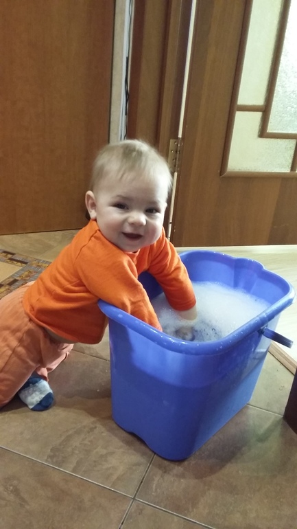 Что умеем: ползает естественно, в ходунках летает только так, особенно у бабы с дедом в коттедже на просторах))) Вдоль опоры ходит, может стоять отпустив одну руку. Показывает ладушки, где у мамы носик, как любит маму(папу и т.д.) голову на плечо кладёт))) Угощает соской-пихает её в рот если попросить😁
