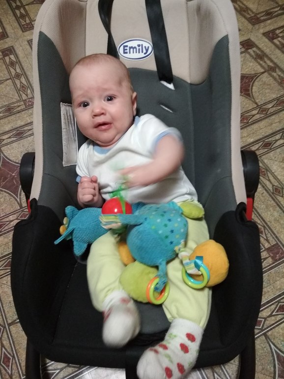 Сидеть нигде не хочет дома, сразу переворачивается и ползёт!