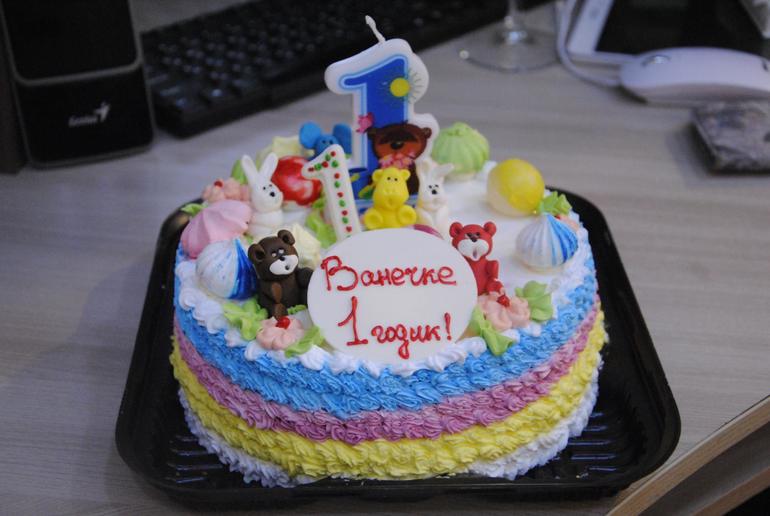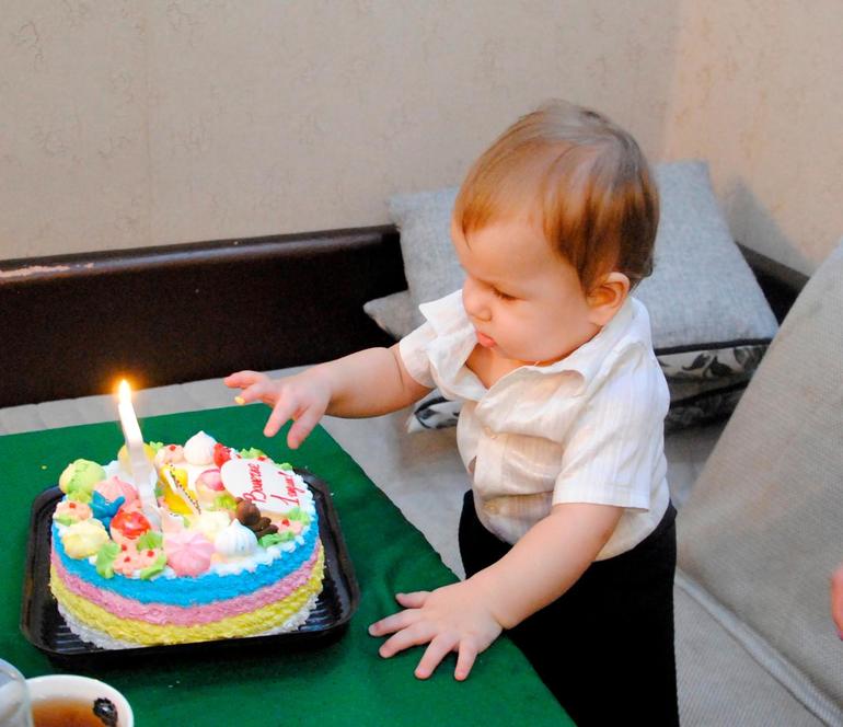 Уже годик. Наши выпускникиВ от и выпускаемся мы из этого сообщества. 7 января Ванюшке исполнился год.если раньше я писала про спокойного ребенка, то сейчас он стал неуправляем.в 9 месяцев мальчик решил начать ходить.и понеслось.лезет где можно и нельзя.отлично все понимает, залезает в мусорное ведро или в розетку лезет,а сам смотрит на меня и улыбается. Ждет реакции.собаке от Вани жизни нет.прячется везде,но безуспешно,он находит и лезет к ней.укусил ее за хвост. так как я вышла на работу, в его 9 месяцев, у него теперь авторитет папа.если папа дома,то меня и не существует вовсе.папа от этого страдает,ему даже в туалет отойти нельзя,сразу истерика.после ухода папы,через 10 минут он снова мамин сынок. Весит мальчик 11500,рост 77 см,говорит папа,мама,и ня,что в переводе дай.еду требует постоянно, нам поесть просто нереально,такое ощущение, что его вообще не кормят,вечно голодный.ест,как проснется 240 мл.ряженки или бифилайфа, после опять засыпает до 10,в 12 каша(начала варить сама,с молоком),в 15.30 суп(уже не разминаю,просто режу мелко,в основе или говядина или индейка),через день добавляю в суп желток.иногда вместо супа у нас овощное почти пюре с рыбой (хек или горбуша),в 19 ест фрукты и творог и в 22.30 каша безмолочная из пачки в бутылке. С ней он засыпает.проблем со сном по-прежнему нет.у Ванюшки 6 зубов, 4 сверху и два внизу.с Викой вроде ладят, но с тех пор,как Ваня начал залезать и слезать во все доступное(у Вики на диване куча ее личного хлама)она начала закрывать дверь в комнату и старается его не пускать.месяц назад порвал ей контурные карты и она назвала его уродом и выставила из комнаты.сама потом полчаса рыдала.вроде все написала ,если что вспомню,потом дополню. Ну и фото