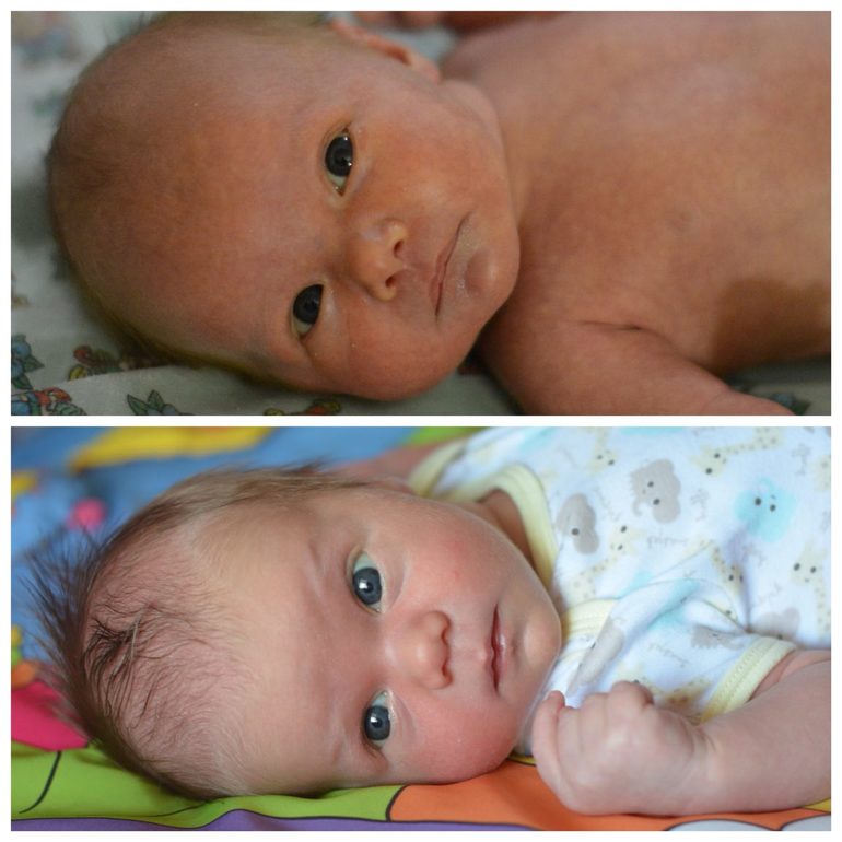 Ну и конечно, как и любая мать, я люблю сравнивать деток) фото прилагаю ) верх-Лера, низ-Сеня