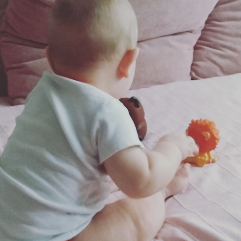 Вчера Гриша сел сам и не завалился. Вобще, процесс у него странный.
