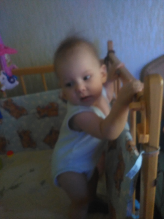 Не успеваю нормально фоткать, вертится как юла. Очень любит двоюродного братика, смеётся с ним, играет, наблюдает за его действиями. Раньше в больнице всегда молчал, теперь начинает плакать, думаю, что это из за прививок, детки все помнят. Сегодня первый раз за 5 месяцев плакал на приёме у врача. Научила сына целоваться))) целую его в щечки или носик, он открывает рот и тянется ко мне)))) Очень люблю, до сумасшествия.
