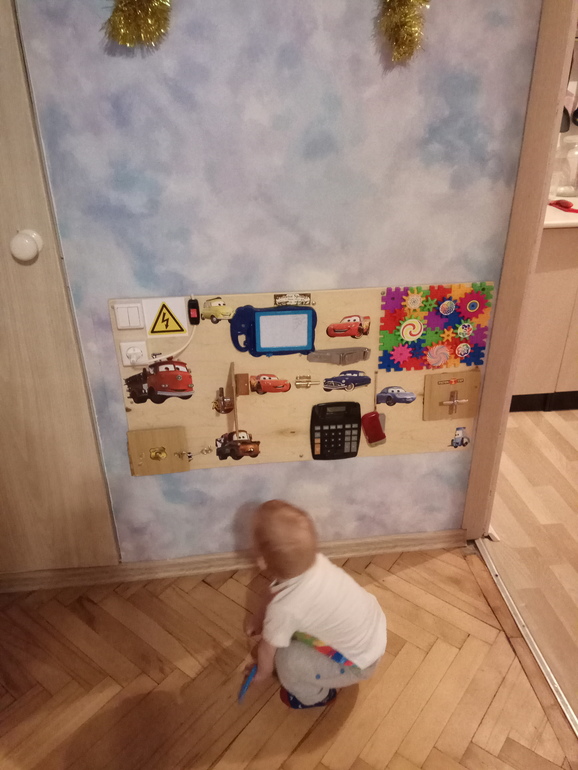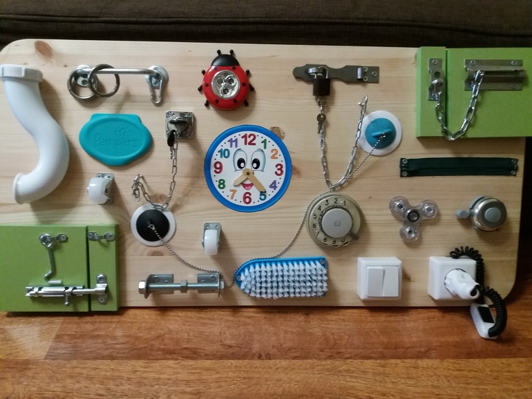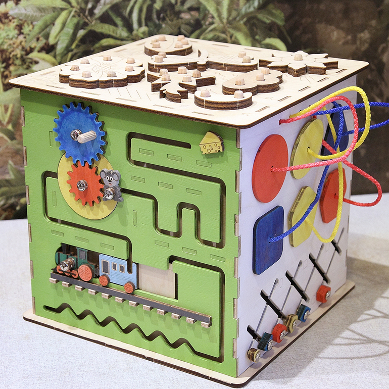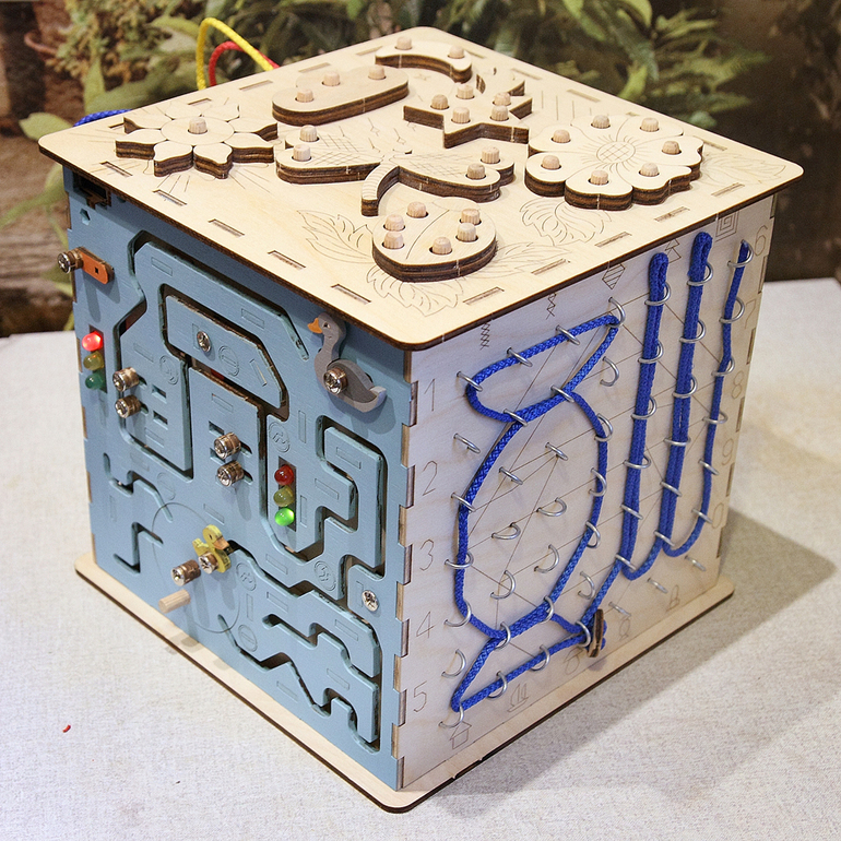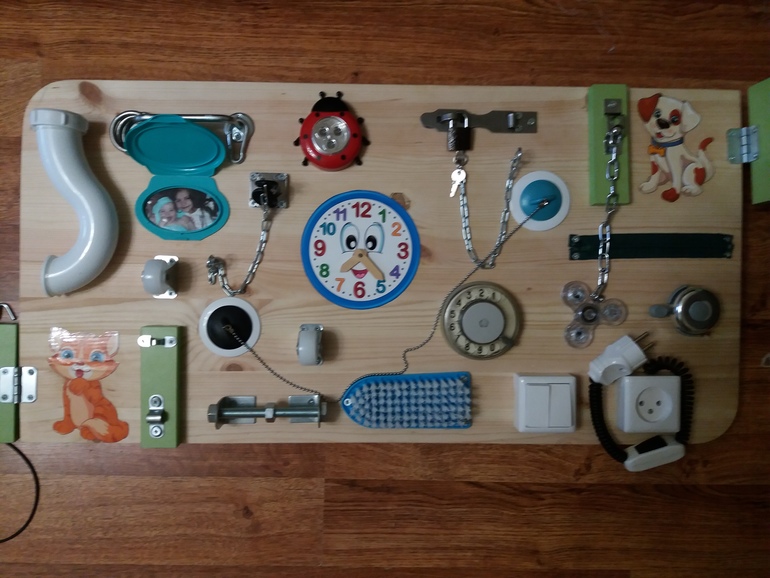 Подарили сыну на год бизикуб. Правда, на заказ, не сами делали. Играет каждый день. Довольны) Нравится спиннер, розетка, музыкальные кнопки, ключница, открывать и закрывать дверки.