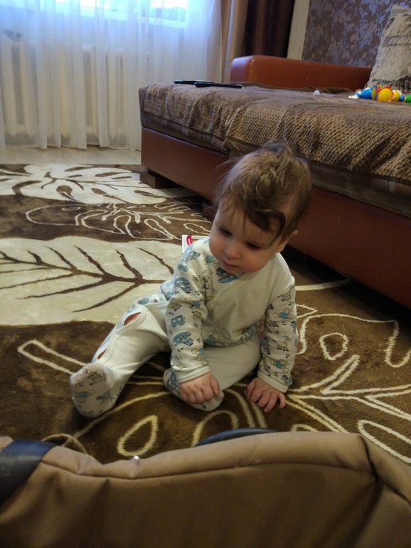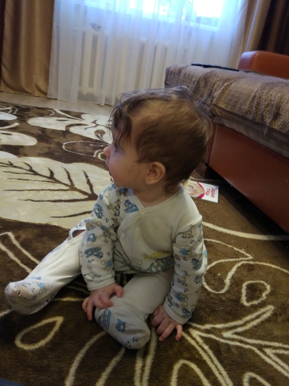 Зачёт! Молодец какой в 6 месяцев сам сел, значит спина уже держит! Мой только в 10 так сел.