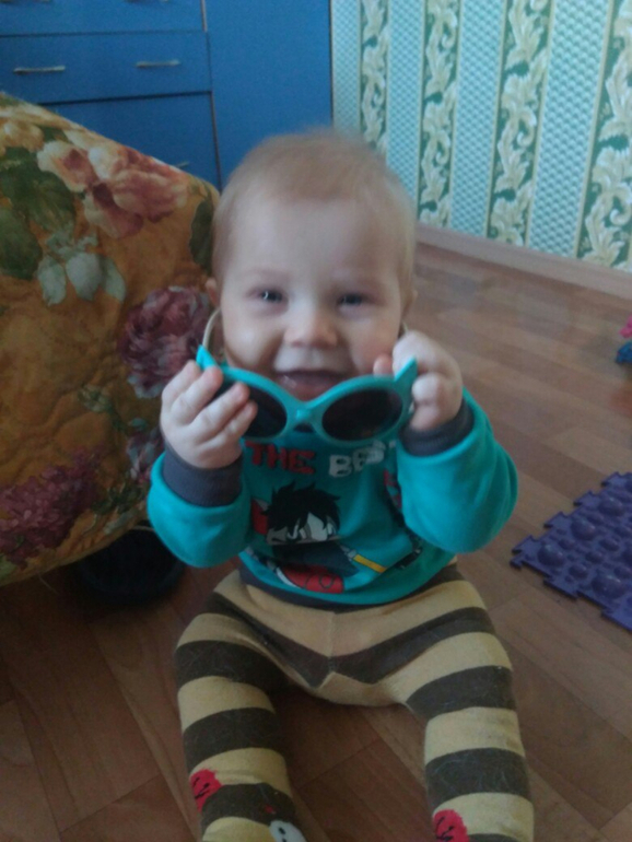 Итак, что умеем: овладел скоростным ползанием в совершенстве! Удивляет своей подвижностью) на месте почти не сидит. Хорошо встаёт у опоры, шагает в сторону, аккуратно садится из положения стоя. Разбирает пирамидку, катает машинку с характерным «вжвжвж», стучит игрушечным молоточком. Кидает игрушки с звукоподражанием «бах» (очень четко). Целует меня, если видит, что кто-то рядом целуется, то причмокивает губками. Когда муж уходит на работу, подползает к двери и отчаянно стучит в нее). Из слов: «мама» осознанно, несколько раз говорил «папа», но я так и не поняла, то ли набор слогов, то ли адресно нашему папе, не уверена. Очень любит собаку, зовёт ее аф. Опять таки то ли подражание «гав», то ли сократил кличку (собаку Афина).