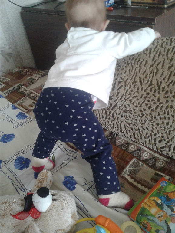Наше достижение сегодня - взяла себе со стола соску. Правда,не понимает еще,как ее вставить в ротик правильно) 6 месяцев и 4 дня