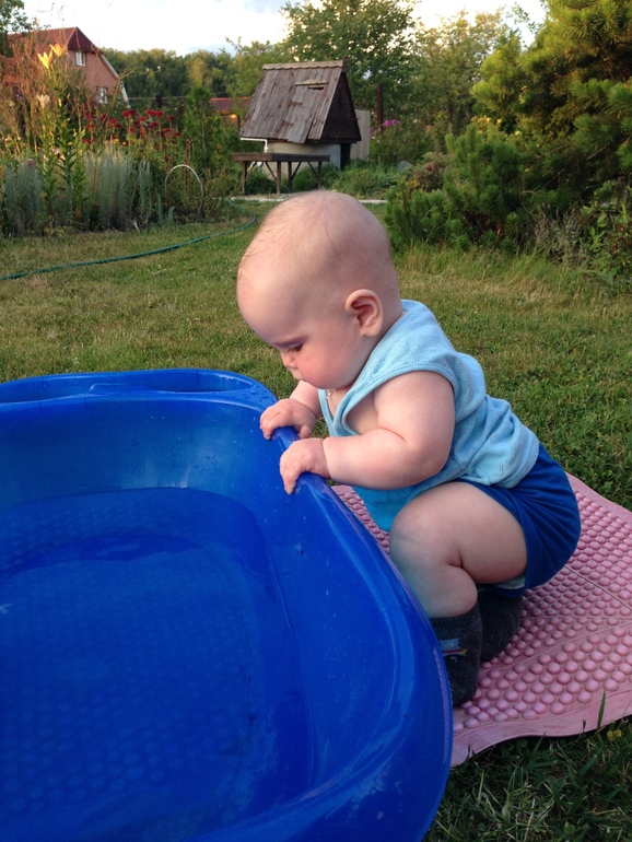 8-9-10 провели с дочкой на даче. Но не помню что бы я была без неё. Она в коляске - ездили по лесу я искала грибы, ползали по коврику (муж сшил из пвх и пенки) на участке , вечером встречались с другими малышами на полянке. Совершали прогулки в коляске по улицам СНТ. Играли в доме. У неё было два дневных сна, если погода хорошая, то спала в коляске (сидящая полностью в лежачую раскладывается. Ставили ванночку, наливали нагретую воду и она плескалась - строго под присмотром.
