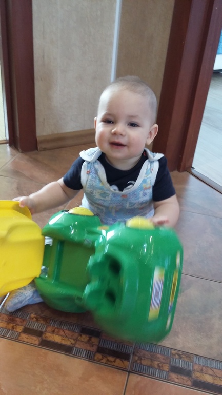 Что умеем: ходит с опорой на одну руку везде, играет сам в ку-ку (за шторами прячется и показывается), ладушки, пока-пока, делится всем что держит в руках, если попросить, сует свою соску в рот папе если тот рядом😂