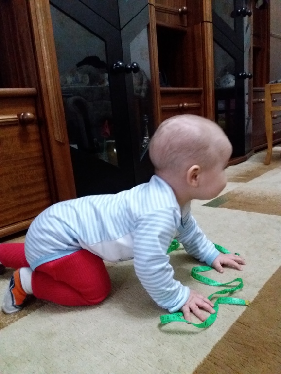 Отчёты по месяцамНу вот еще один месяц пролетел незаметно. Растет моя вишенка не по дням, а по часам. А я с упоением наслаждаюсь своим материнством. Господи какая же она классная. Но обо всем по порядку: ¤ рост и вес точный не знаю, в больницу нам только в апреле. Домашние весы показывают 8500. Разница с больничными у нас в 100 грамм. Так что не ошибуюсь, что пока вес 8400-8500. Рост примерно 71-72 см.¤ в 7 месяцев и 23 дня ребенок сам встал у опоры. Играла в кроватке, увидела меня, ухватилась за перекладину и встала. Пару дней ножки еще дрожали. Теперь очень уверенно стоит. Хватается и за руки и за штаны и за кресла и встает.¤ в 7 месяцев и 25 доча наконец то поползла на четвереньках. До этого ползала гусеничкой, то лягушкой, на коленках то давно стоит, а тут видимо сообразила и поползла. Теперь как торпеда, уворачивается от бабушки и ползет ко мне то на кухню, то в ванну, то в детскую. Еще и сантиметр тащит ( любимая игрушка). Все долой слипы, колготки и штаны с бодиками и носками наше все. В слипах путается и падает. Пытается сесть с бочка, но боится оторвать ручку от пола. Ну думаю что скоро осмелеет и сядет сама. А да и еще ребенок не умеет уворачикаться от препятствий, если на пути стул или игрушка прет прямо на них, из игрового коврика выползает через бортик, в общем как в фильме "Чародеи": ' цель видишь- вижу, препятствий не замечаешь- не замечаю! Тогда вперед)))), ну ничего думаю научится. А пока приходится следить, чтоб не врезалась никуда.