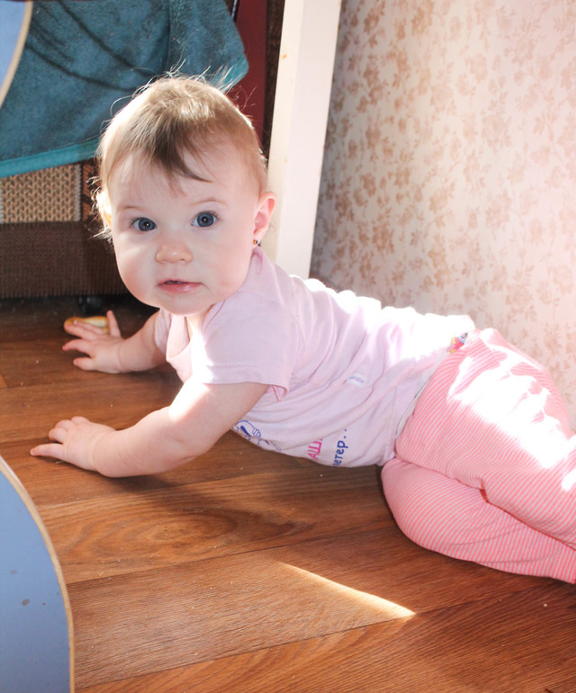 Что нового произошло за месяц? Стала немного ходить ножкой. От меня до кровати ...или от меня к папе... А так пока лентяйничаем.