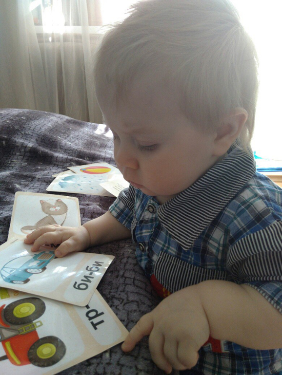 Речь, важные словаСыну 10 месяцев. Малыш не устает радовать нас своими успехами в речи. Когда обращается ко мне или к мужу (подползает просится на руки), говорит «мама» или «папа» соответственно. Хорошо повторяет слоги, очень нравится ему это занятие. Поэтому сейчас на «ура» идут слоговые дорожки из от Умницы. Например, я говорю: «На крыше белая труБа - ба-ба-ба» и Гошка повторяет «ба-ба-ба». Это очень круто! Я в восторге) Получаются рифмовки со слогами «ба», «да», «га», «ма», «па», «на». Когда проговариваю остальные карточки, Жорка очень внимательно смотрит на мою артикуляцию, пытается повторить))) То же самое касается карточек-подражалок. Пытается говорить «тик-так», когда я показываю на часы и спрашиваю, что это у нас. Недавноо смотрели в окно, как трактор убирал снег и тренировали «тр-тр». Забавно очень! Часть подражалок получается отлично, звуки животных пока не показывает.