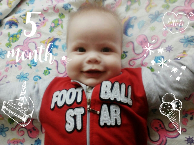 Как быстро летит время. Весим мы уже 8 кг. Рост 67 см. Удивительно что он... набрал мало, примерно 300 грамм хотя стабильно шло больше кг в месяц. Может это из за того что мы переболели. Но врач ничего не сказала по этому поводу так что думаю все в норме. Из умелок ничего нового. Наконец то мы дошли до ортопеда и невролога. У невролога были уже второй раз и поставила она нам слабый тонус мышц. Голову мы держим хорошо но иногда бывает не уверено, с переворачиваниями тоже проблема он пытается но без помощи не выходит, врач поставила его на ножки а он так и остался сидеть на полусогнутых и даже не пытался их выпрямить, и то что когда он лежит то руки раскинуты всегда и расслаблены . Нам назначили массаж но запись аж на следующий месяц,дома я конечно делаю массаж но он-то не профессиональный. Прочитала в интернете что у нас гипотонус. Никогда не слышала только про гипертонус знаю. Ну ничего будем лечить. А так у меня веселый жизнерадостный улыбчивый парень ,пока не хочет есть или спать)