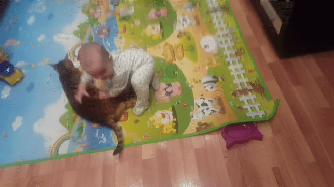 Погоди)) Моя кошка признала в Нике человека в 1,2 где-то (несмотря на очень активный интерес в сторону кошки с пелёнок), тереться об неё стала, спит только с ней или на ней