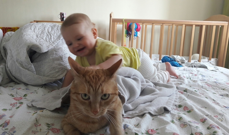 Иногда мама показывает пирамидку и ведерки и книжки очень красивые, и мне все нравится! Еще она хитрющая, когда я висну на ее ноге меня отвлекает, но я могу опять вспомнить, что я хотел к маме и тогда мы ложимся спать.