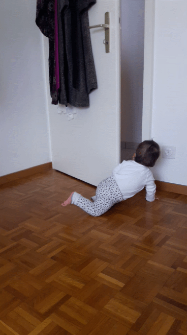 8 месяцев ровно. Сегодня человек сделал первый шаг у опоры, чтобы переместить себя на 15 см в сторону. До сих пор он у опоры только стоял, подпрыгивал и голосил (одновременно). Будут ли новые попытки вскоре или это было сделано бессознательно - покажет время.
