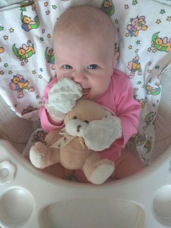 ИгрыВот у нас и появился первый друг)))) Я подумала, что уже пора бы нам начать играть с игрушками, и познакомила Бусю с Мстиславом😊 Бусёна в восторге)) Попробовала на вкус, пообнималась, в общем, он ей понравился) Конечно она пока не совсем понимает, как с ним играться, но с удовольствием слушает то, что он ей вещает (ну с моей помощью, естественно)😊 Слушает внимательно, улыбается...так прикольно! Так и развлекаемся теперь)))