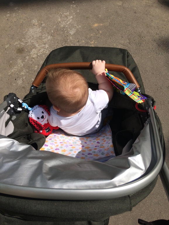 Общается со всеми на своём тарабарском, очень любит людные места, в коляске и оповещает всех о том, что он едет 😂