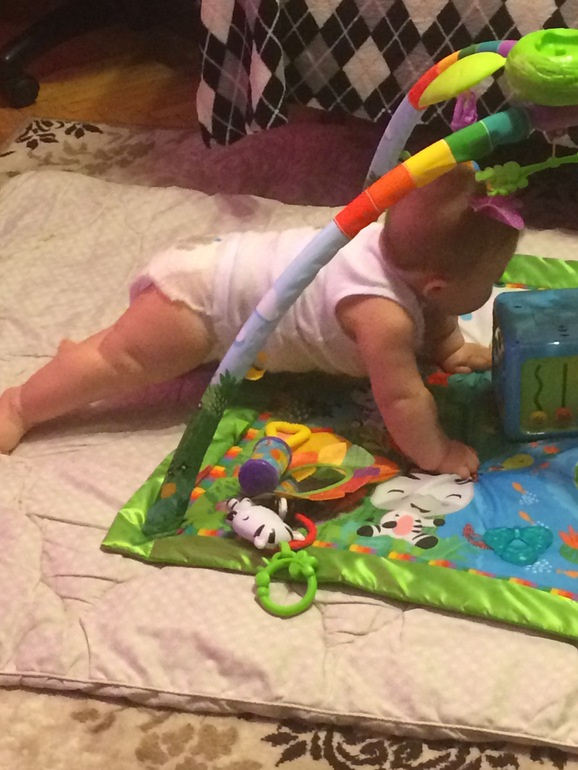 поздравляю!!! я думаю, моя мамзель в год будет весить меньше))) Алиса 10700 была) скоро поползет,моя так же делала, как твой. а теперь по всей квартире гоняет, только бегай следом.