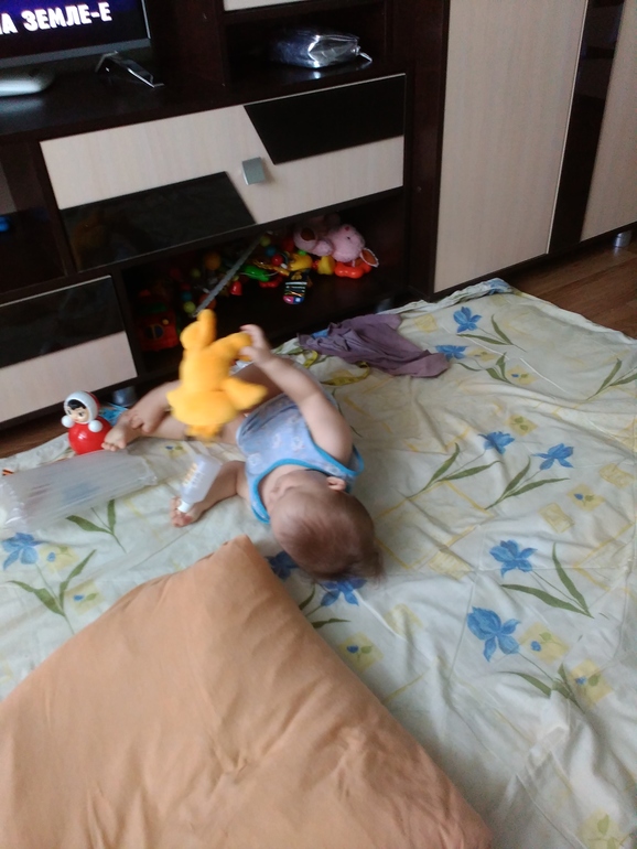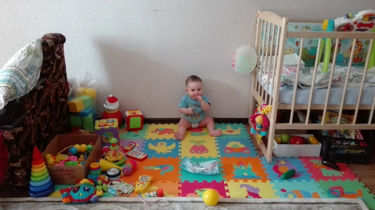 Мы сначала на одеяле находились, я его каждый день вытряхивала. А сейчас раз начал учиться ходить, то на одеяле стало не удобно, выбирала между ковром и ковриком разлом.