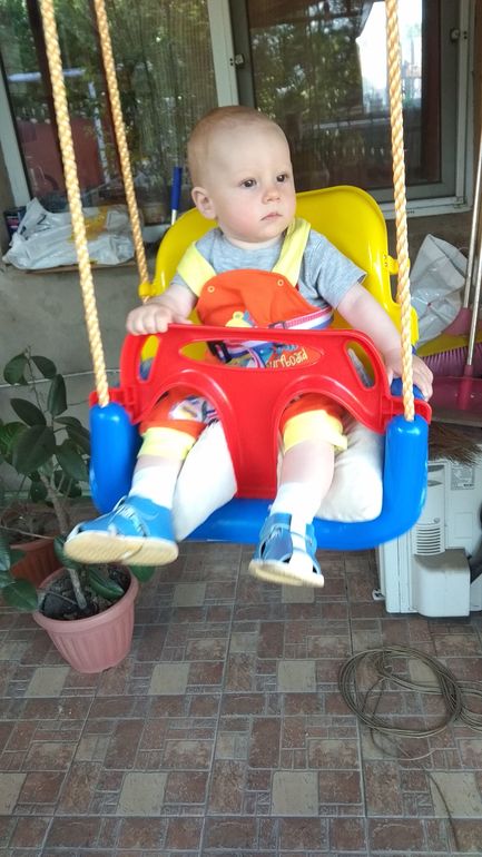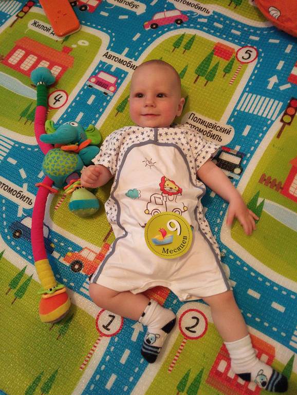 За два дня до 9 месяцев мы наконец то стали ползать на четвереньках, ходим за ручки, сидеть так и не хотим, только если силой посадить.