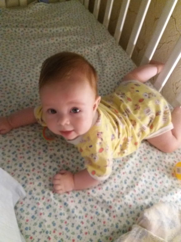 - Лежа на животе поднимает жопку и делает первые попытки ползти.