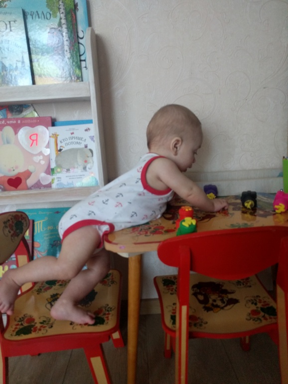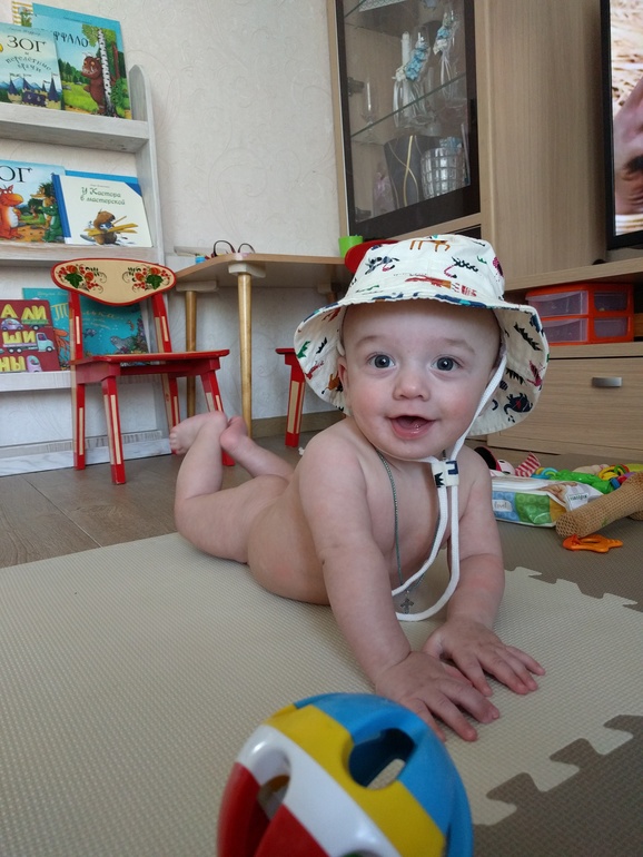 Он пытается стоять, если ставить к опоре, но я не разрешаю. И подтягивается сесть, если приподнять за руки. Ваня ваааааще не парился в этом возрасте и просто лежал, ну, максимум перекатывался, как брёвнышко, по квартире. Иногда с четверенек присаживается на бедро. Ваня это сделал в 10 месяцев!
