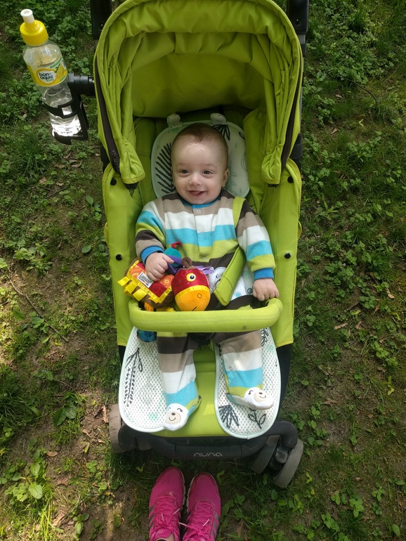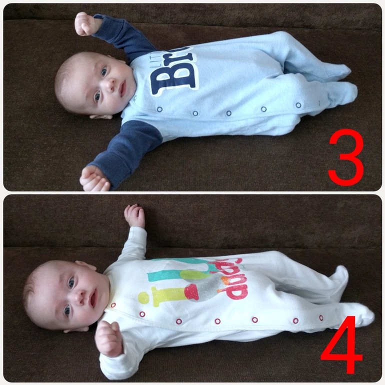 Отдать должное Женьке - спит ночью он нормально с 22-5.30. один раз кушает за ночь. А с 5.30 начинаются мои мучения: он просыпается каждые 20 минут, приходится прыгать с ним на фитболе, заворачивать-разворачивать и по сто раз перекладываять его то в баунсер, то в кроватку. Как же тяжело все это по утрам. Есть у меня психологический рубеж - 7 утра. После этого времени если проснулся, то все встаём, нет смысла качать дальше.