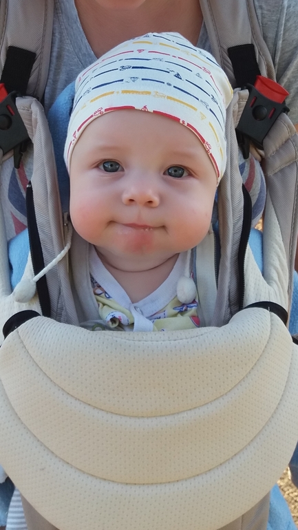 Спокойные прогулки в коляске, а также спокойные ночи закончились.. В коляске сидит максимум минут 15, после чего крик на всю улицу, мол, вытащите меня отсюда!) Поэтому выходим погулять в основном в слинге.