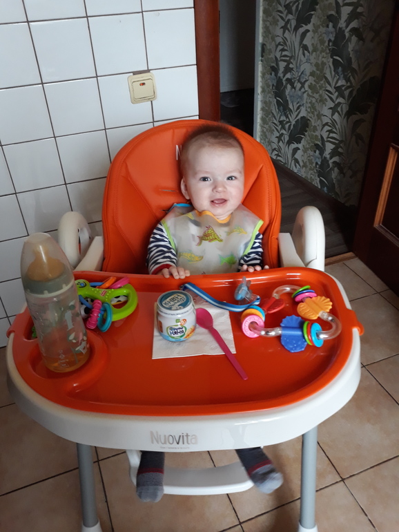 Прикорм по прежнему молочные: смесь овсяная, гречневая. В ознакомительных целях был кабачок, броколи, завтра дам попробовать цветную капусту. С понедельника будем забирать на молочной кухне нарине. Хотим с мужем преобрести для Ванюши стульчик для кормления, пока присматриваемся.