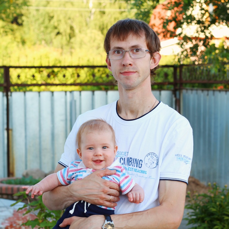 Очень улыбчивый сынок растёт. Наконец удалось в кадр его улыбку поймать. Отвечает ею всем улыбающимся с радостью и готовностью.