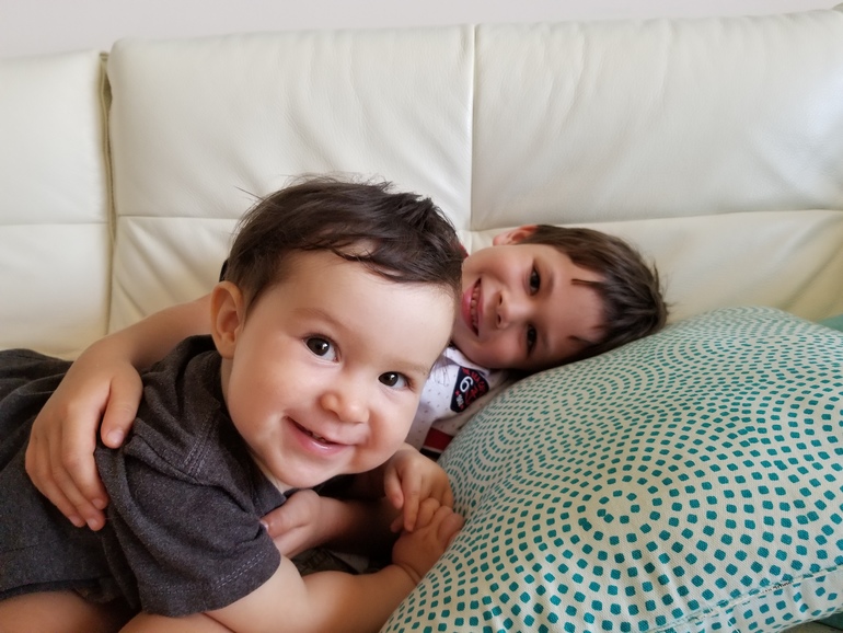 Были на приеме у педиатра, Дане делали physical exam - взвешивали, проверяли ушки, и тд, она начала плакать. К тому времени как нам ставили прививку, рыдала во всю. Але сначала пытался врача остановить, потом говорил мне что Дане так не надо, а потом видя что мы его не слушаем и продолжаем ее "мучать", разревелся от безысходности. И в конце концов я успокаивала обоих. Вот такой он брат - самый лучший брат на свете.