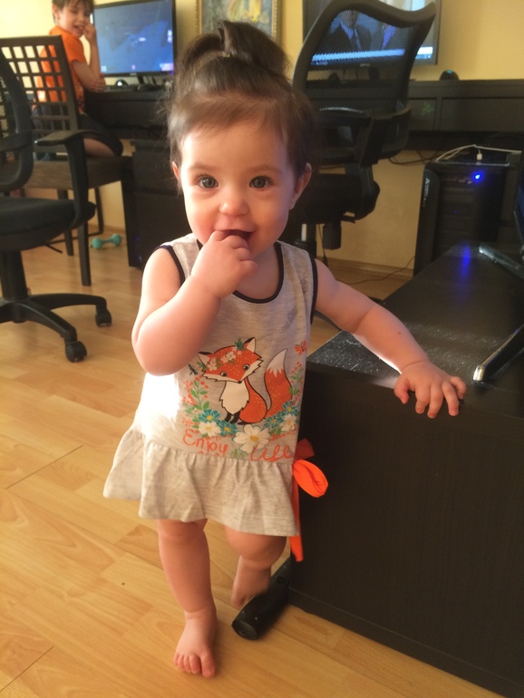 👣 с 10,5 месяцев пошла, за 2 недели отточила навык, так что сейчас почти бегает. Иногда переходит на колени, особенно когда пытается догнать кота )) На той неделе научилась сама вставать на ноги с пола, без поддержи и опоры. Так же умеет слазить с дивана, но пока страхую. Залезает тоже хорошо если есть за что зацепиться, например, простынь, на диван пока не получается, он высокий и держаться не за что.