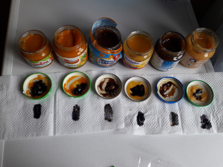 опыт не имеет смысла так как пюркшки из разных продуктов, в тыква и черносливе природно разное количество крахмала.