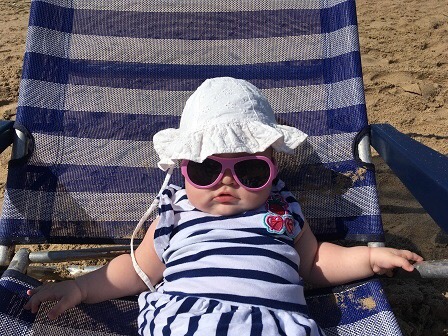 Благодаря возрасту не было проблем с едой, не стоял остро вопрос в том, что уползёт куда-нибудь, залезет без спросу. Единственное, до песка постоянно умудрялась докопаться, когда на полотенце лежала - сейчас при виде песка в песочницах приходит в экстаз и вырывается, чтобы пустили в песочницу)))